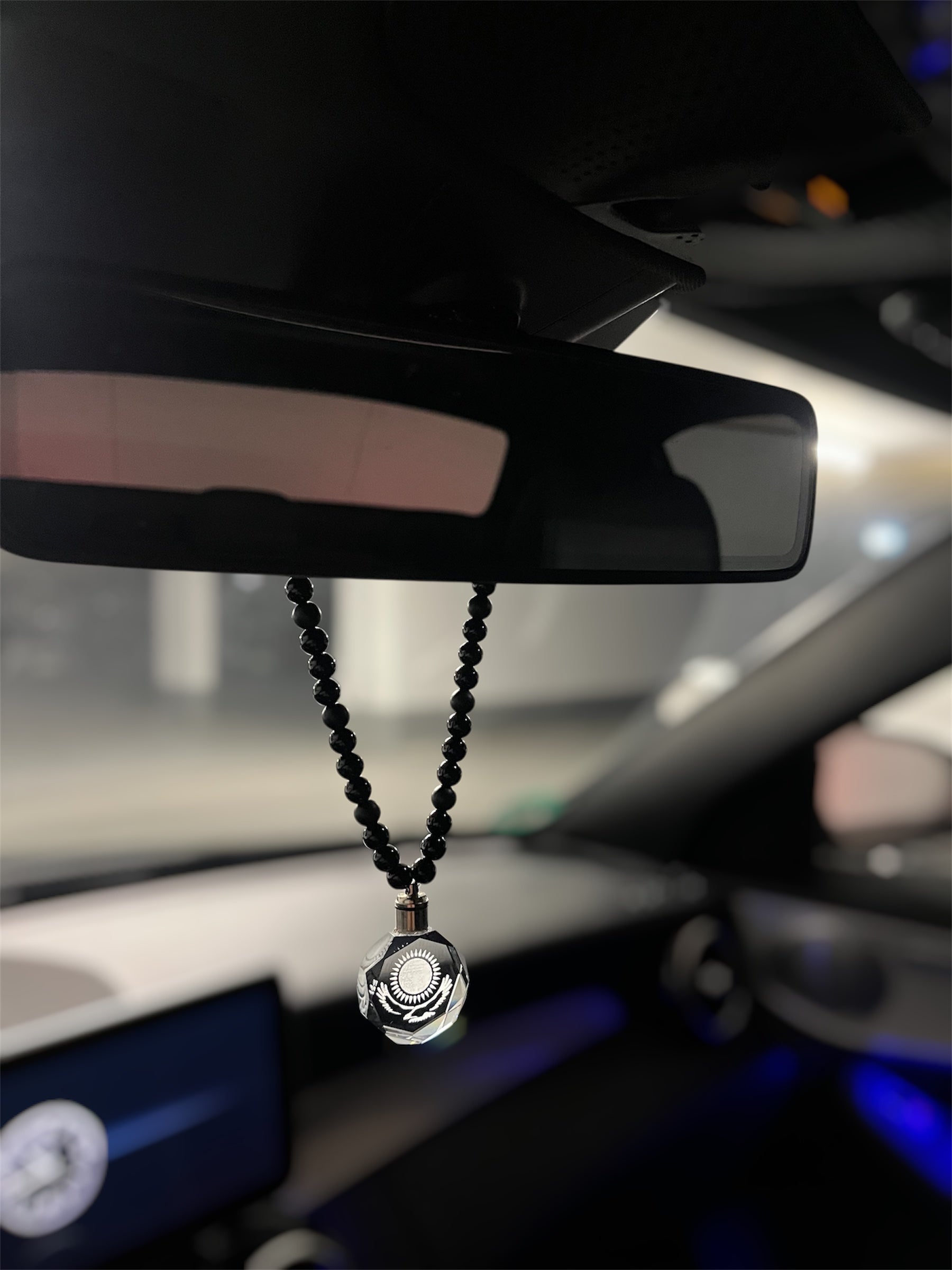 Diese handgemachte Perlenkette vereint 54 hochwertige Acrylperlen (8 mm) mit einem einzigartigen Glasanhänger, in dem ein Länderlogo eingelasert ist. Mit einer Länge von 44 cm ist sie der ideale Rückspiegel-Anhänger .