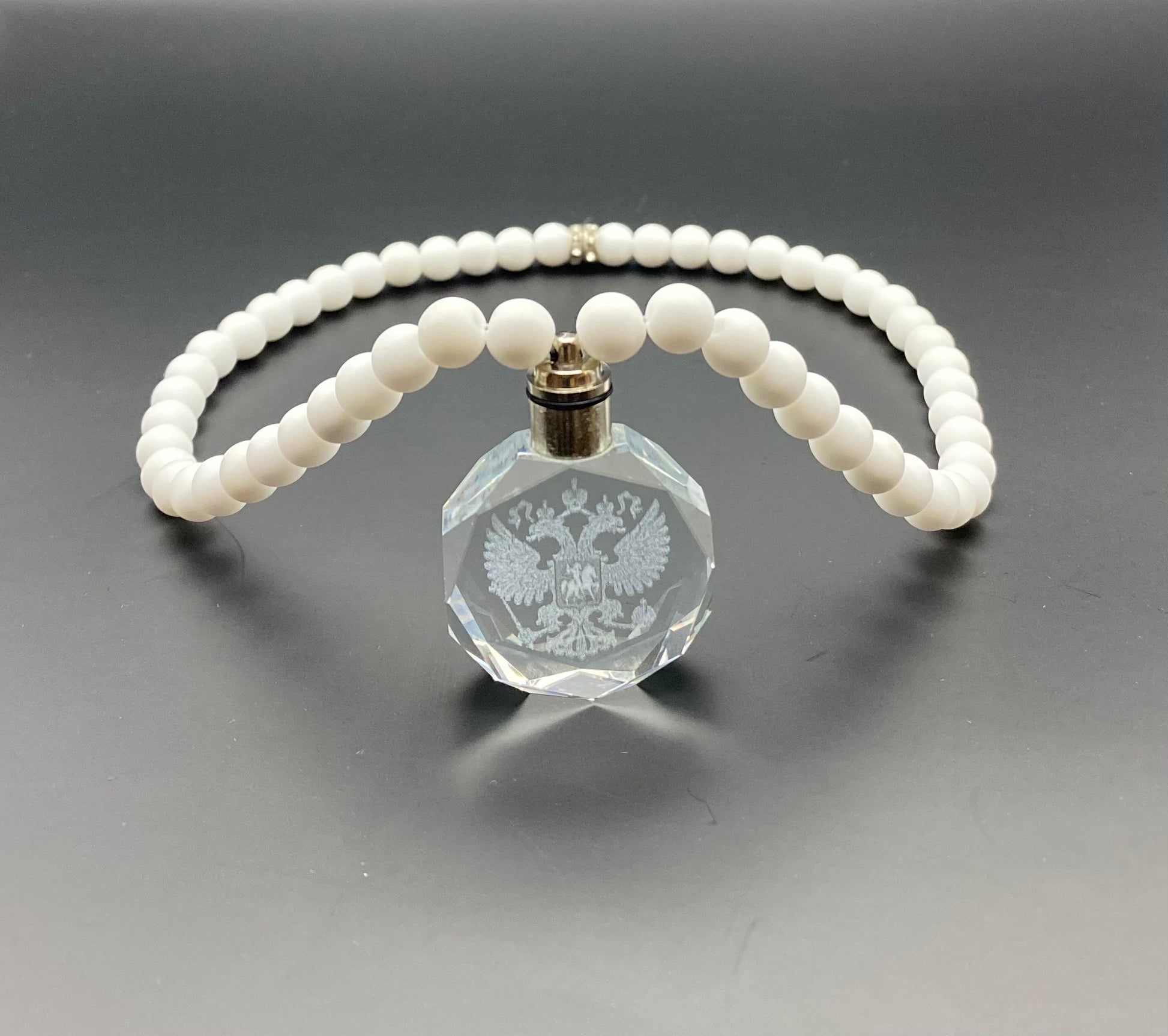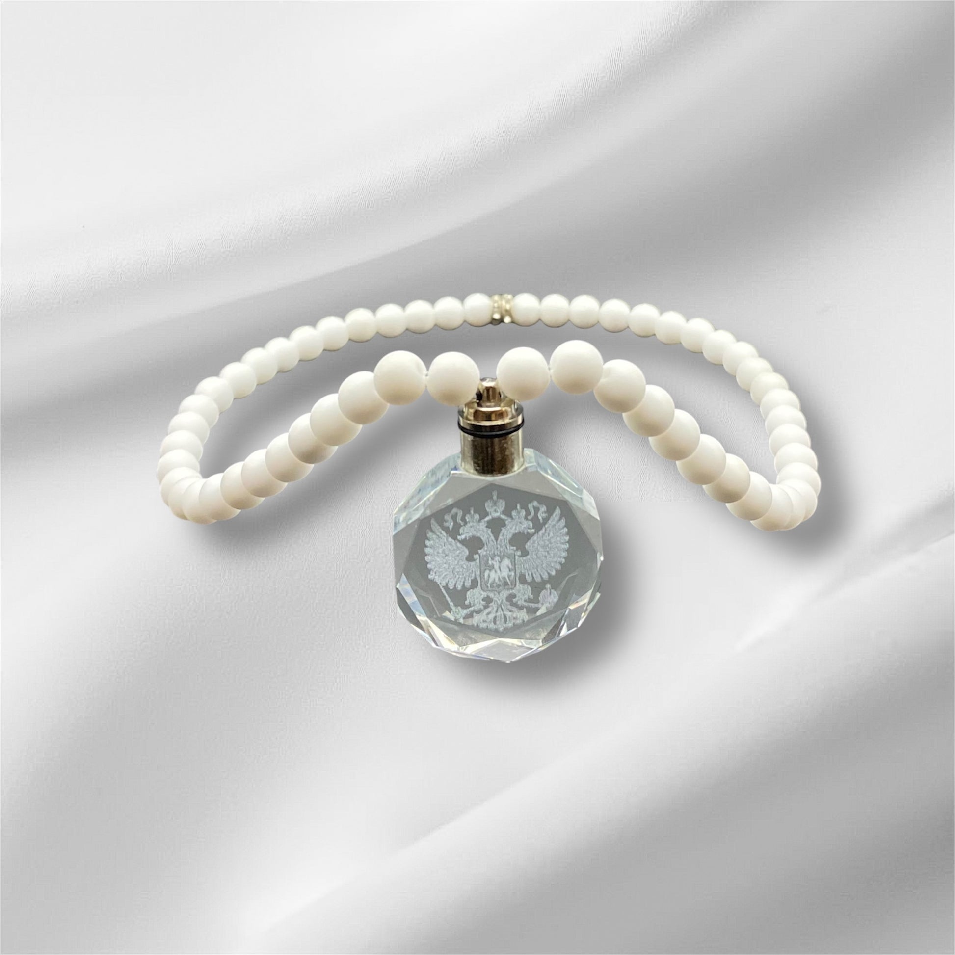 Diese handgemachte Perlenkette vereint 54 hochwertige Acrylperlen (8 mm) mit einem einzigartigen Glasanhänger, in dem ein Länderlogo eingelasert ist. Mit einer Länge von 44 cm ist sie der ideale Rückspiegel-Anhänger .